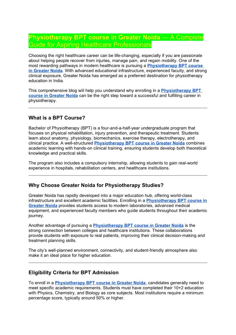 Physiotherapy BPT course in ...