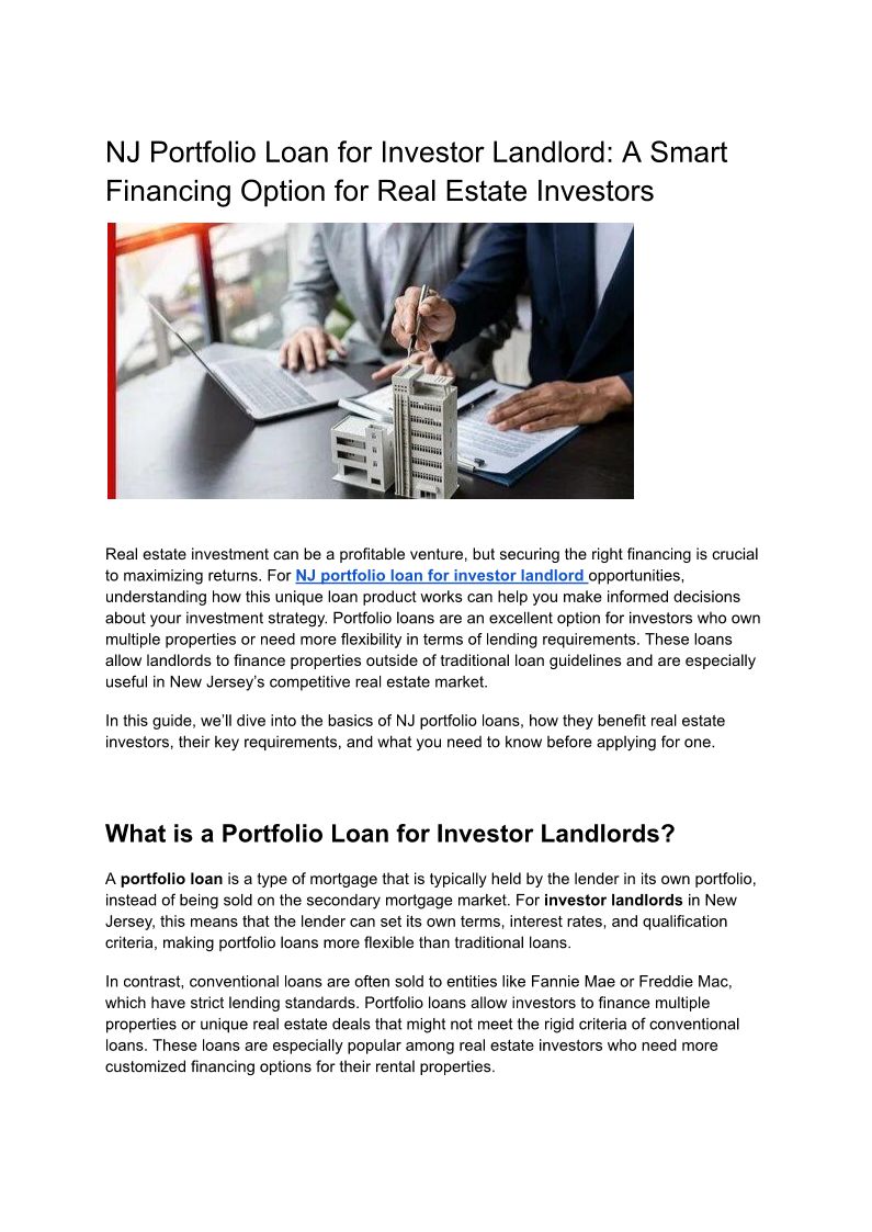 NJ portfolio loan for invest...