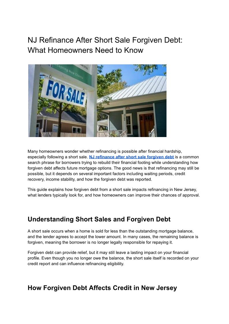 NJ refinance after short sal...