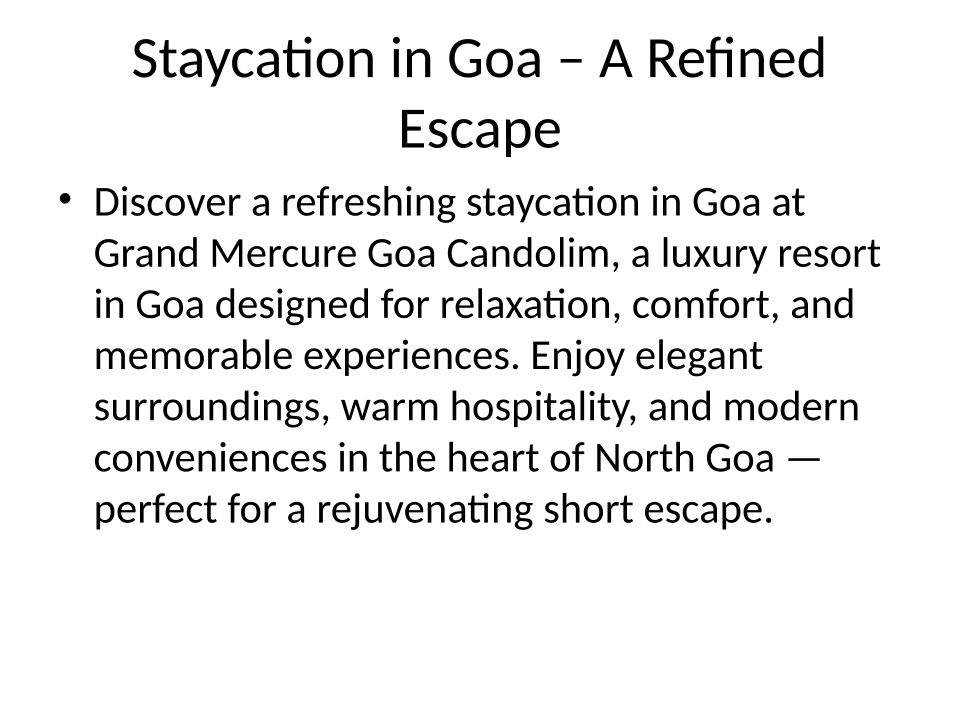 Grand Mercure Goa Candolim is a luxury resort in North Goa offering private pool suites, spa experiences, pet-friendly stays, and premium dining.
