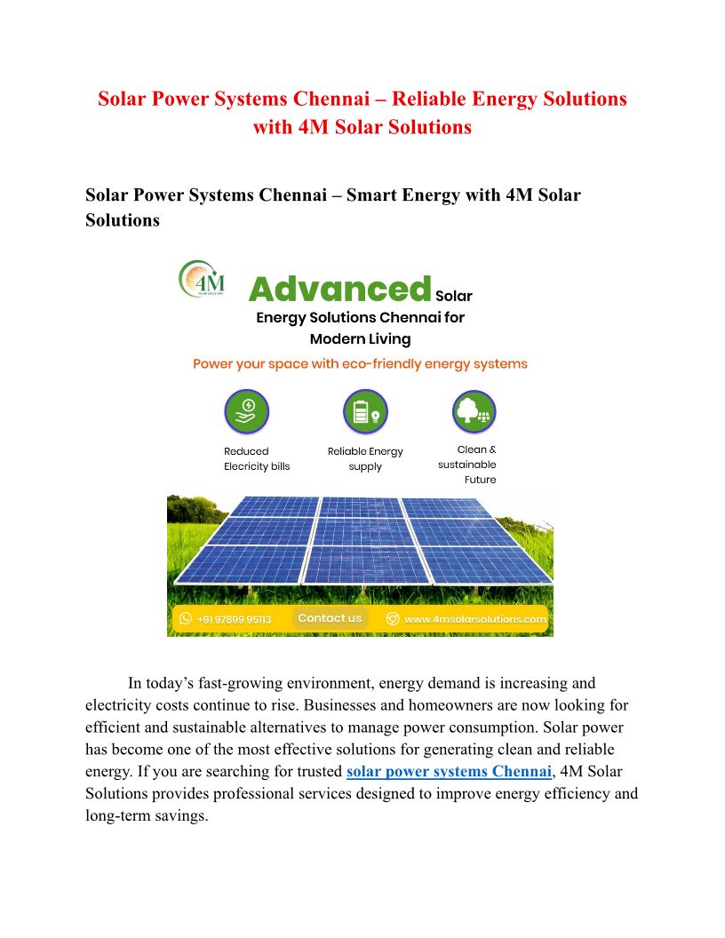 Solar Power Systems Chennai ...