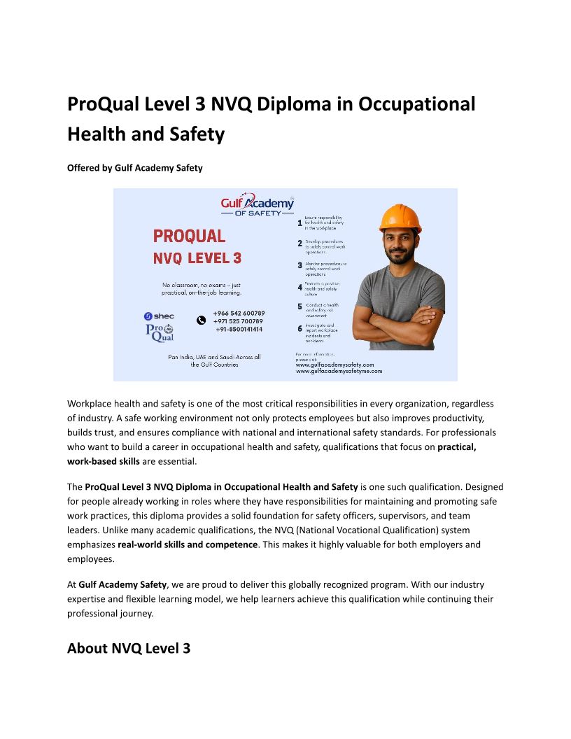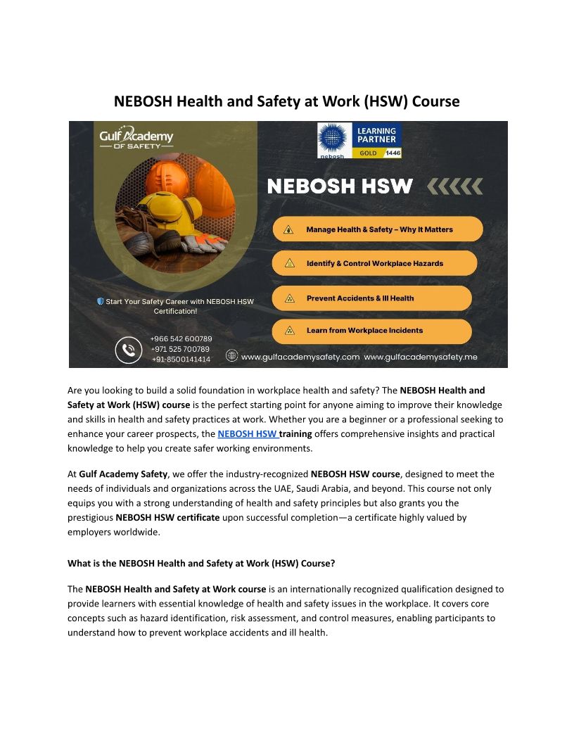 Established with a mission to raise workplace safety and create competent safety professionals, the Gulf Academy Safety has emerged as a major provider of Healt