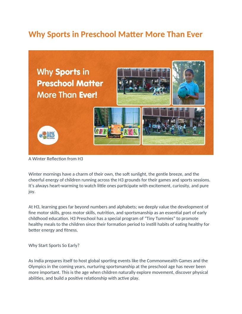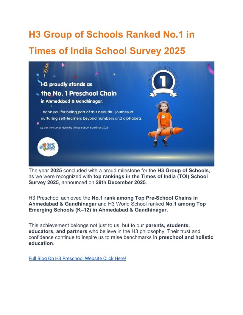 H3 Preschool one of the Best preschool in Ahmedabad.