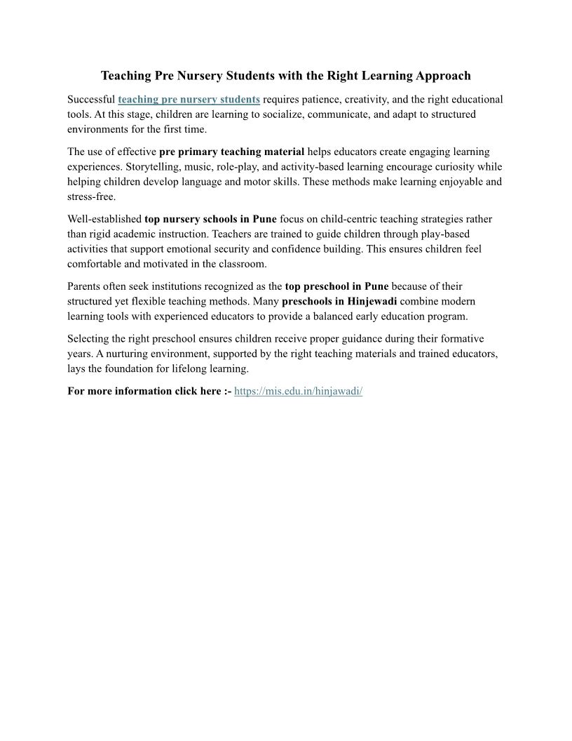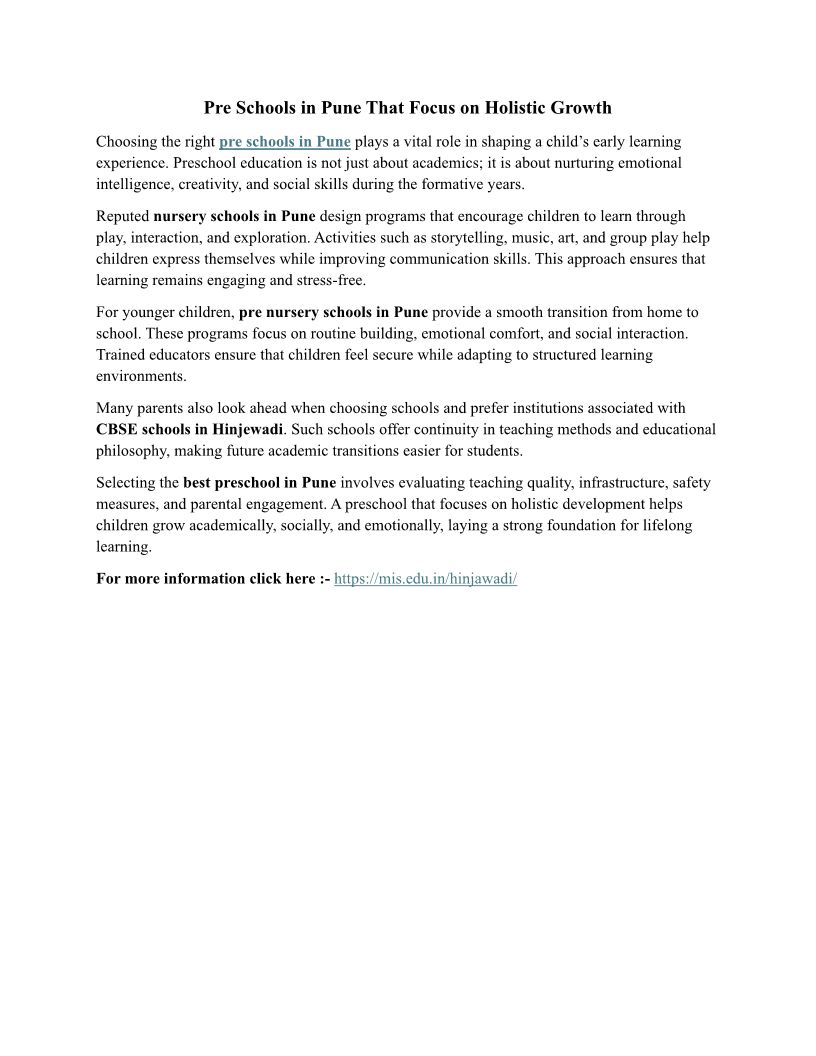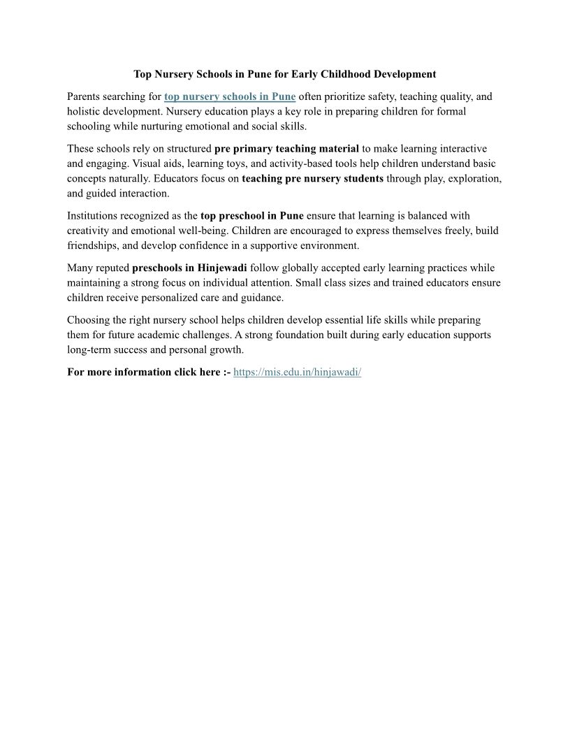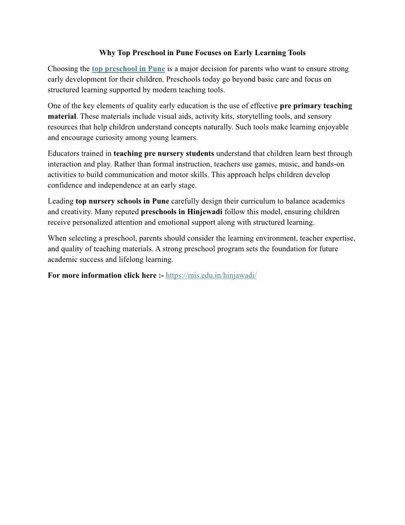 Why Top Preschool in Pune Fo...