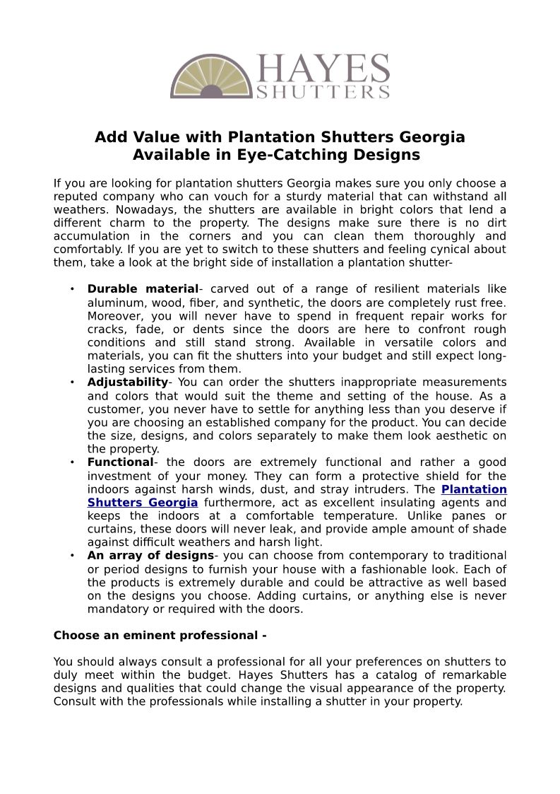 Hayes Shutters is ready to serve your shutter needs with the highest quality products and personal customer service. We are your best source for professional, v