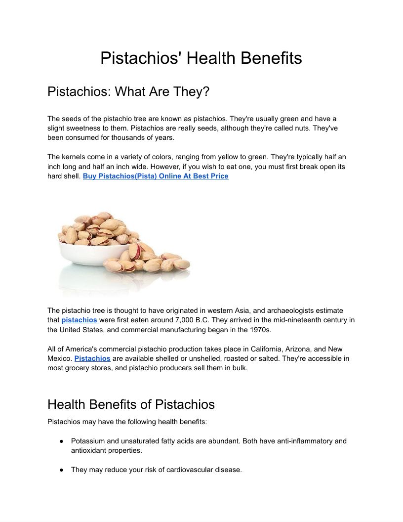 Pistachios' Health Benefits