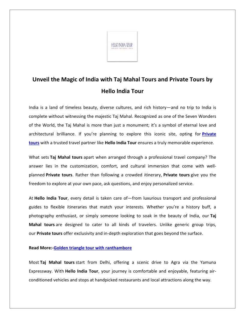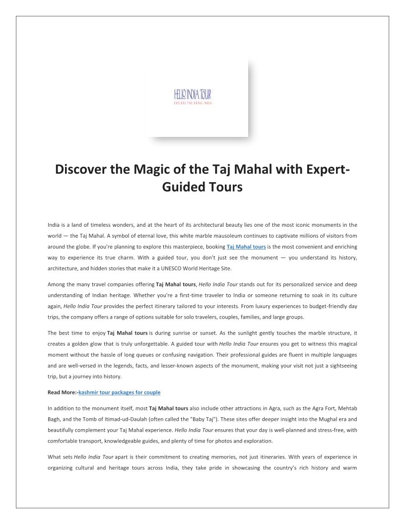 Best Taj Mahal Tour | Hello ...