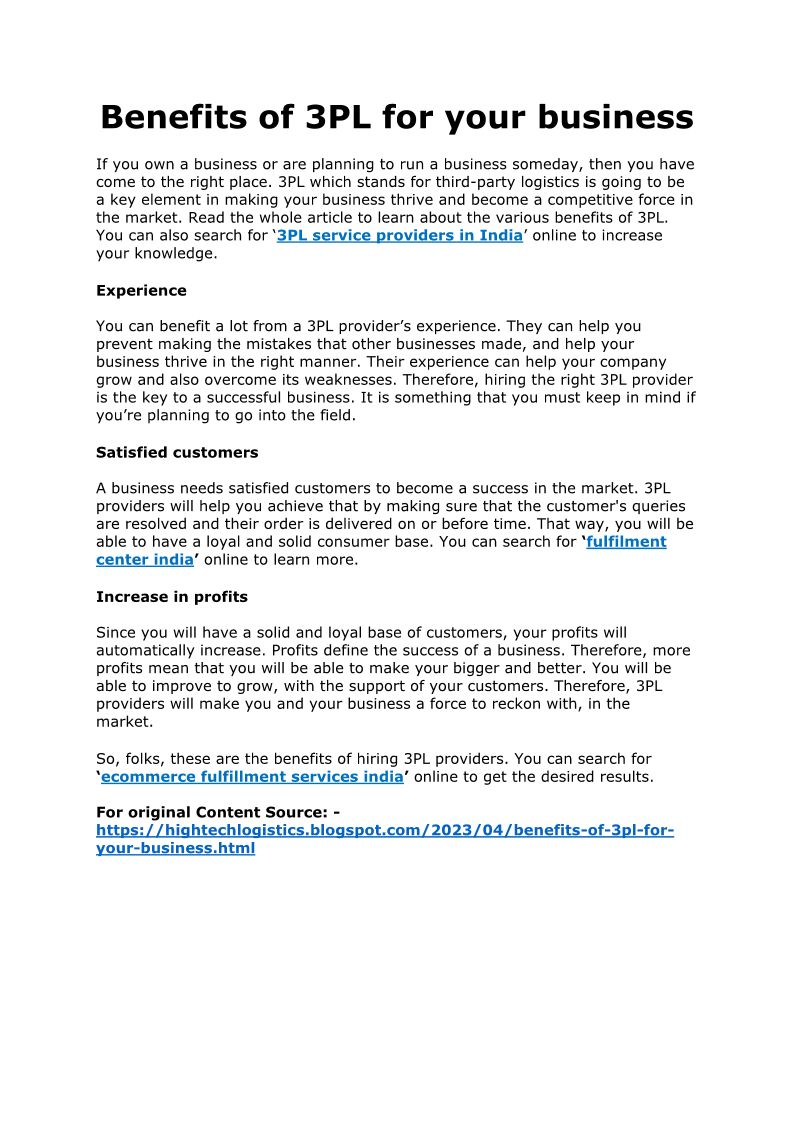 Benefits of 3PL for your bus...
