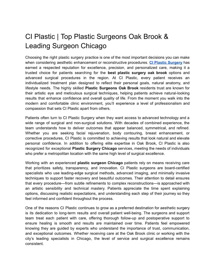 CI Plastic Top Plastic Surg...