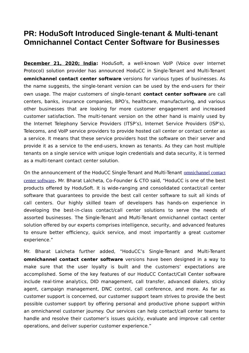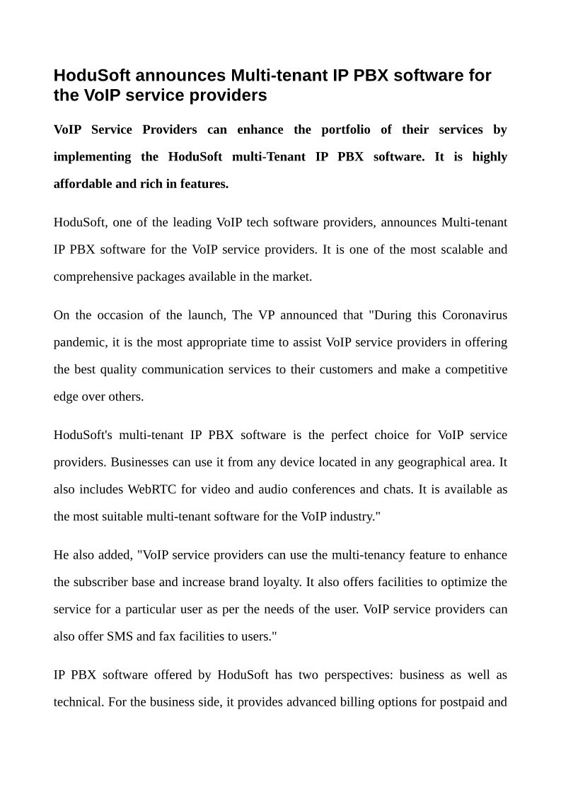 HoduSoft announces Multi-ten...