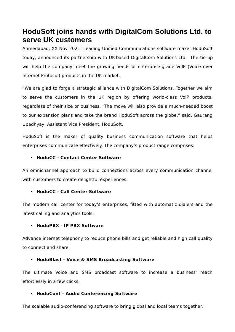 HoduSoft joins hands with Di...