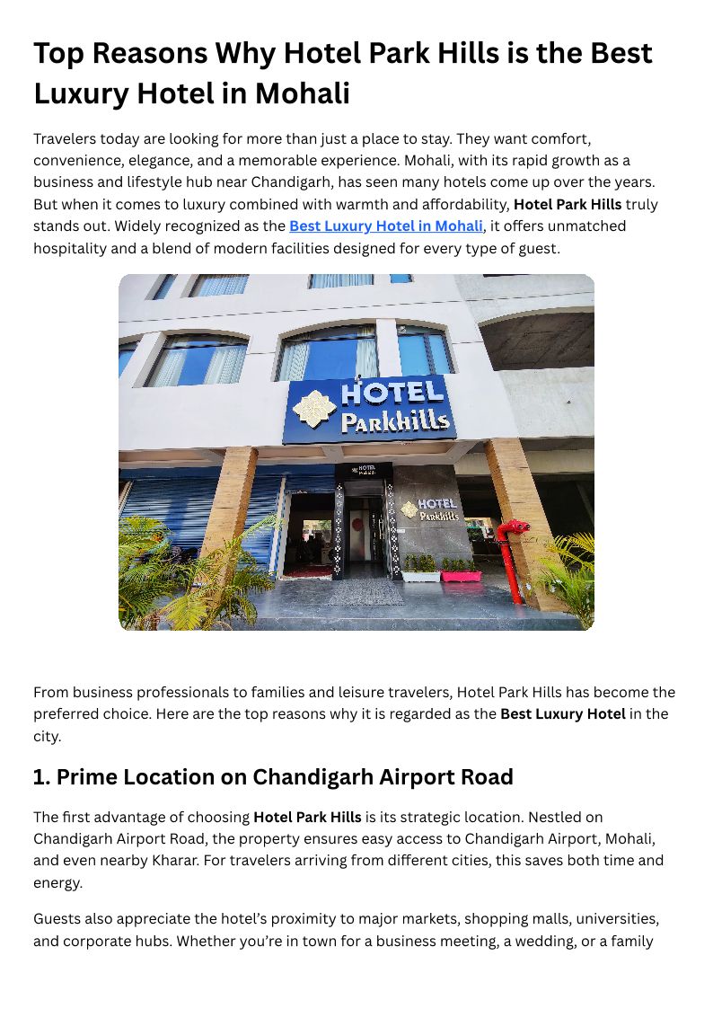 Top Reasons Why Hotel Park H...