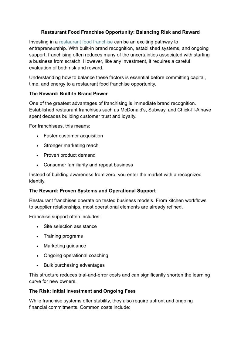 Restaurant Food Franchise Op...