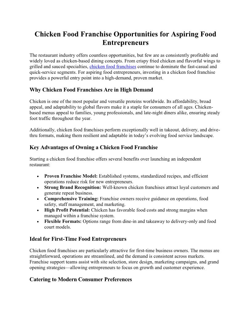 Chicken Food Franchise Oppor...