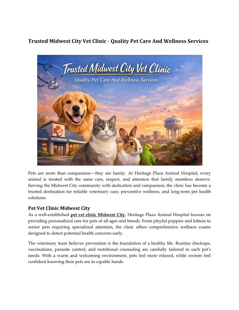 Heritage Plaza Animal Hospital has been providing high quality, veterinary medical care and diagnostic services in Midwest City, OK since 1988.