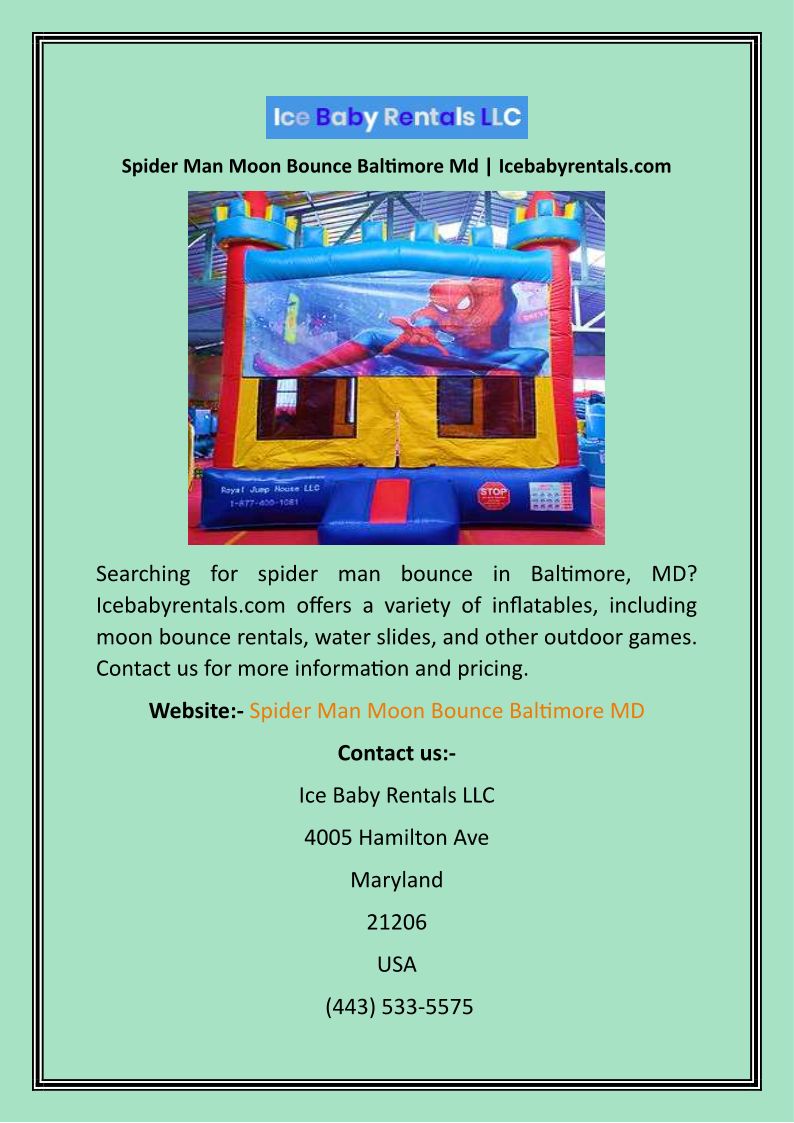 Spider Man Moon Bounce Balti...