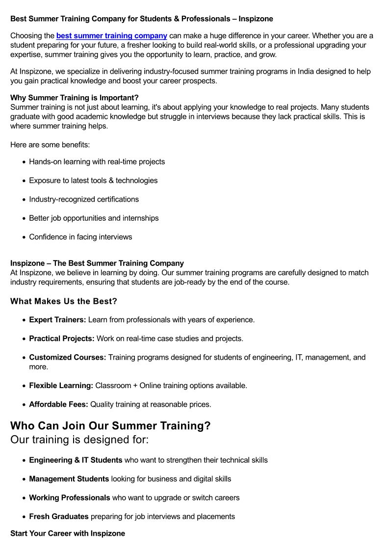 Best Summer Training Company...