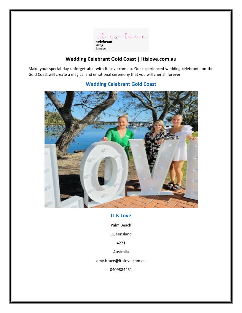Celebrants Gold Coast | Itis...