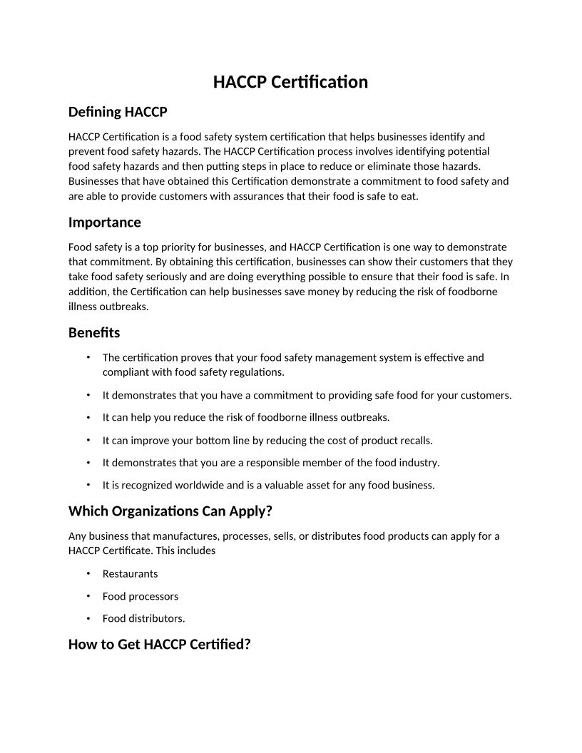 HACCP Certification