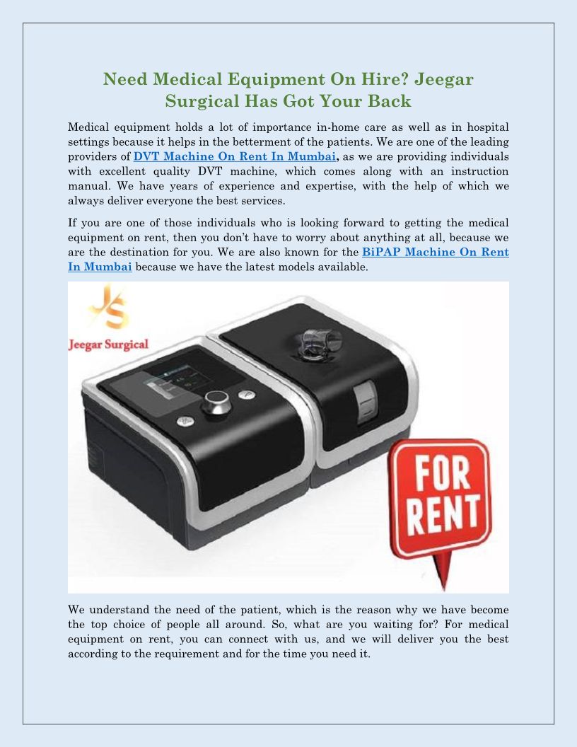 Jeegar Surgical is one of the reputed names in Mumbai, as the company is offering a different range of medical equipment for rent.