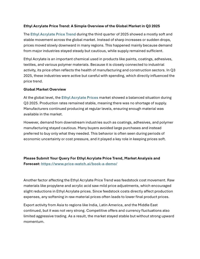 Ethyl Acrylate Price Trend: ...