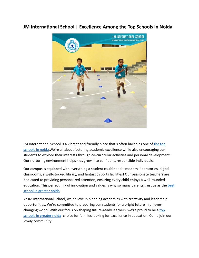 JM International School, Greater Noida West — CBSE co-ed day school at Techzone IV offering experiential learning, smart infrastructure & balanced development.