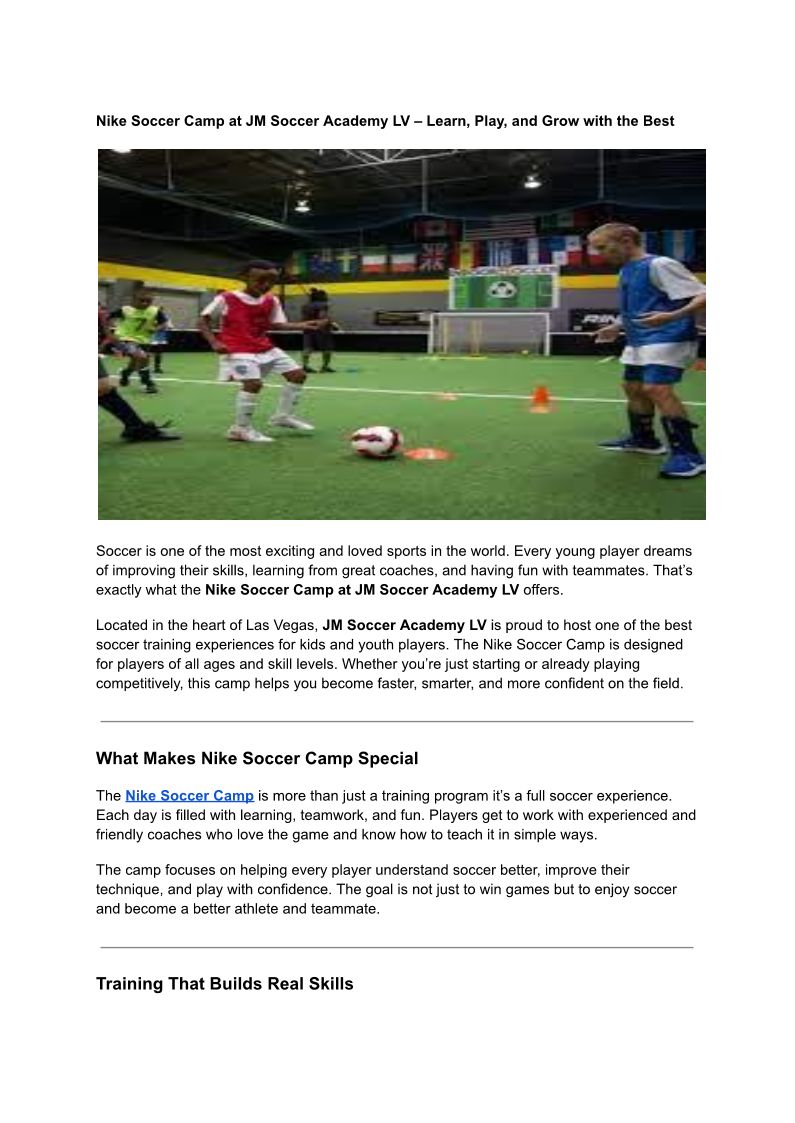 Nike Soccer Camp at JM Socce...