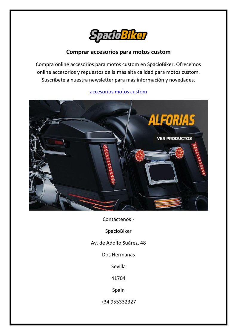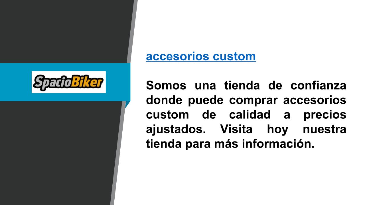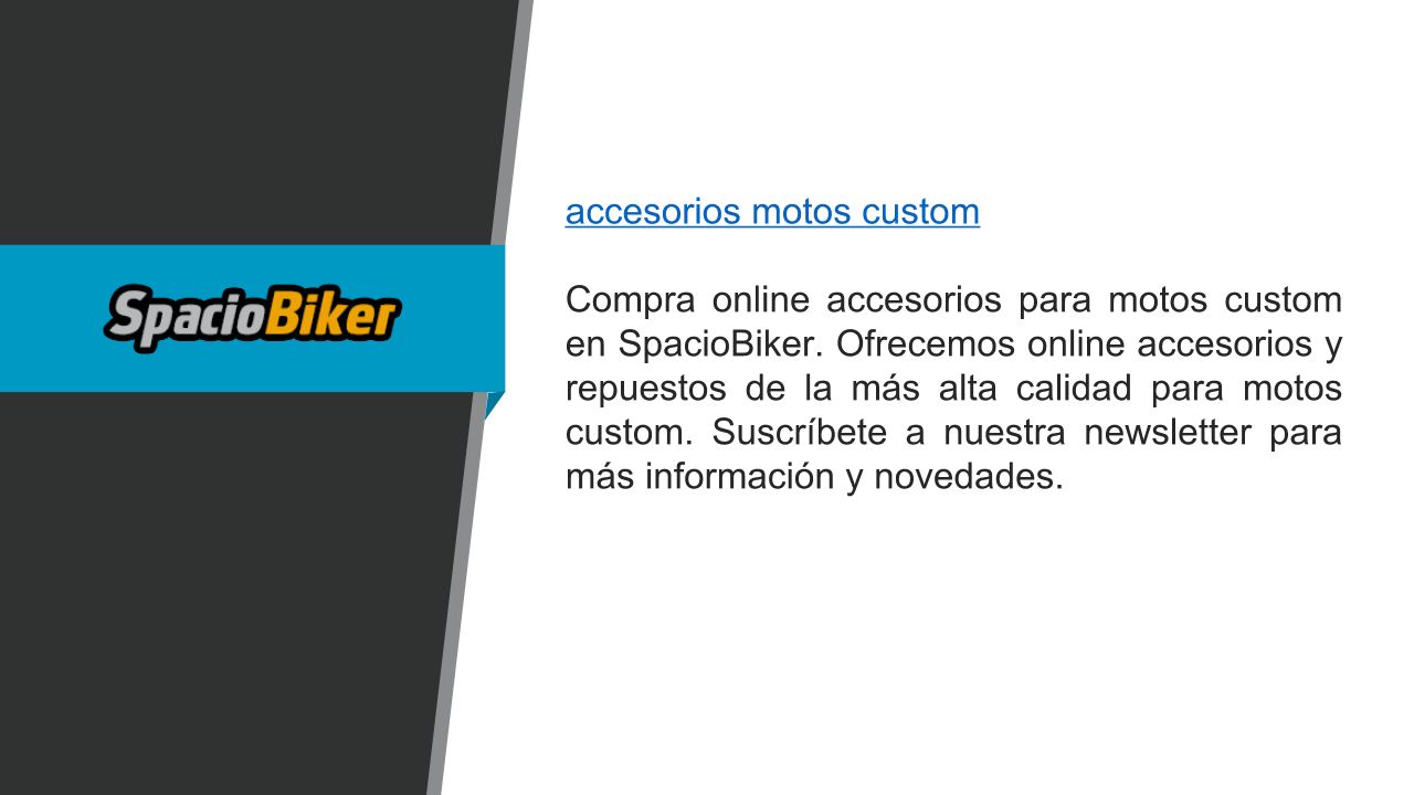 Compra online accesorios para motos custom en SpacioBiker. Ofrecemos online accesorios y repuestos de la más alta calidad para motos custom. Suscríbete a nuestr