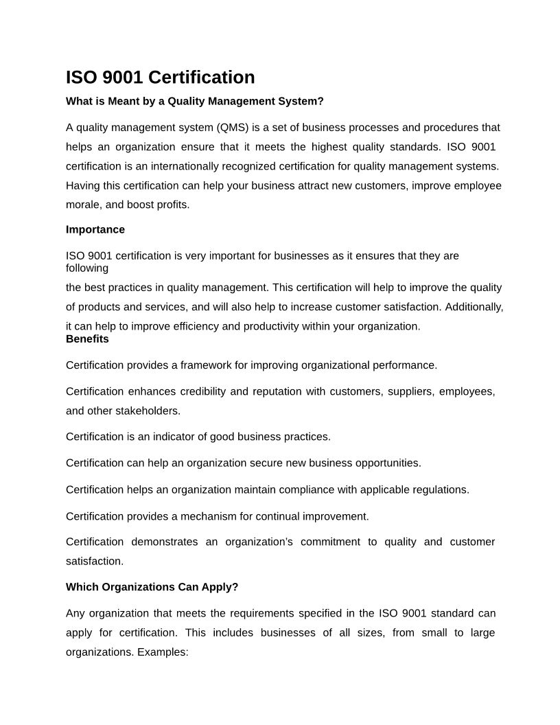 ISO 9001 CERTIFICATION