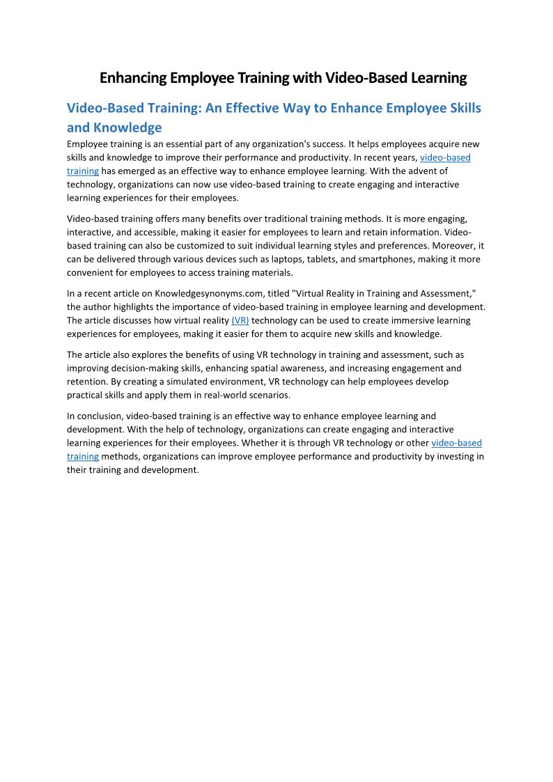 Enhancing Employee Training ...