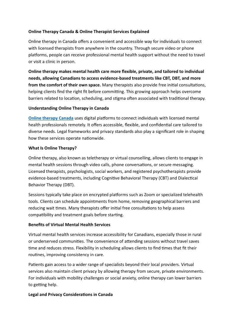 Online Therapy Canada Online...