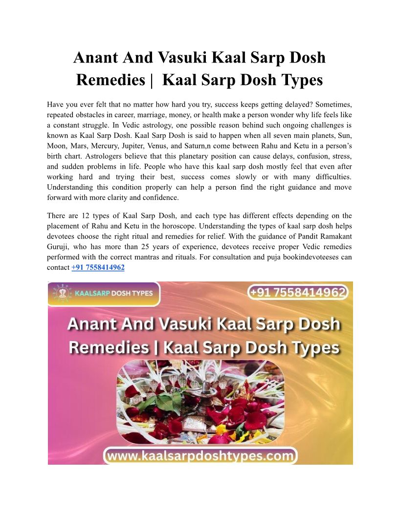 Know what Anant Kaal Sarp Dosh means, its effects on life, benefits, & powerful remedies for peace and success. Call Pandit Ramakant Guruji now: +91 7558414962.