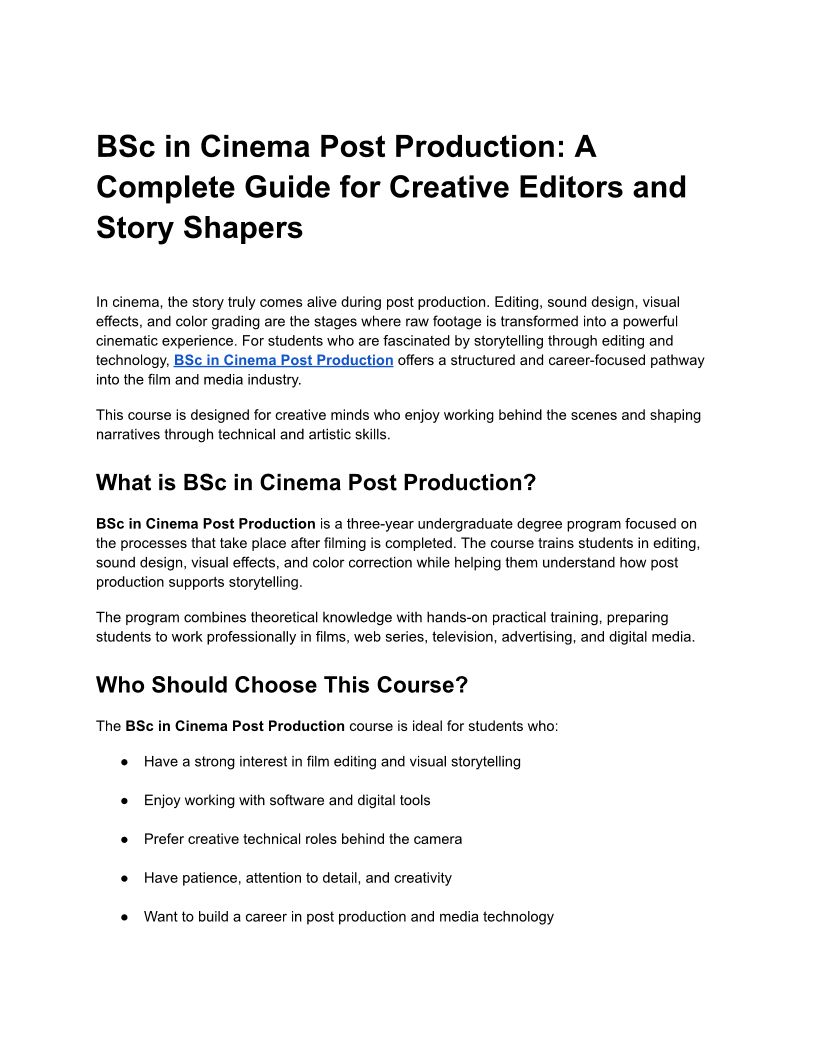BSc in Cinema Post Productio...