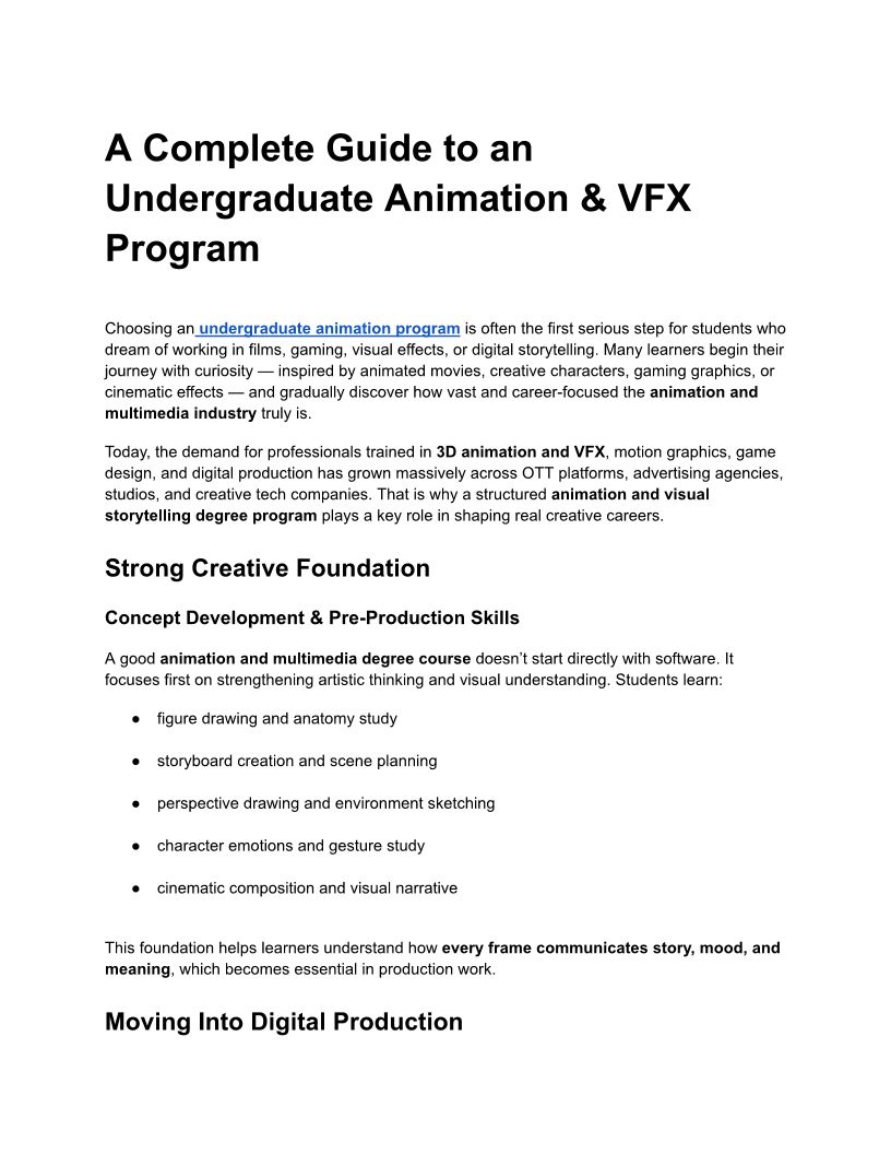 Bachelor Degree in Animation...
