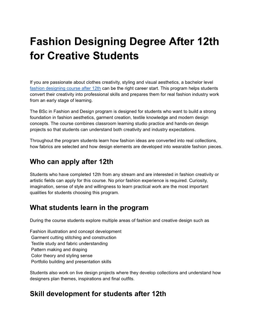 Undergraduate Degree in Fash...