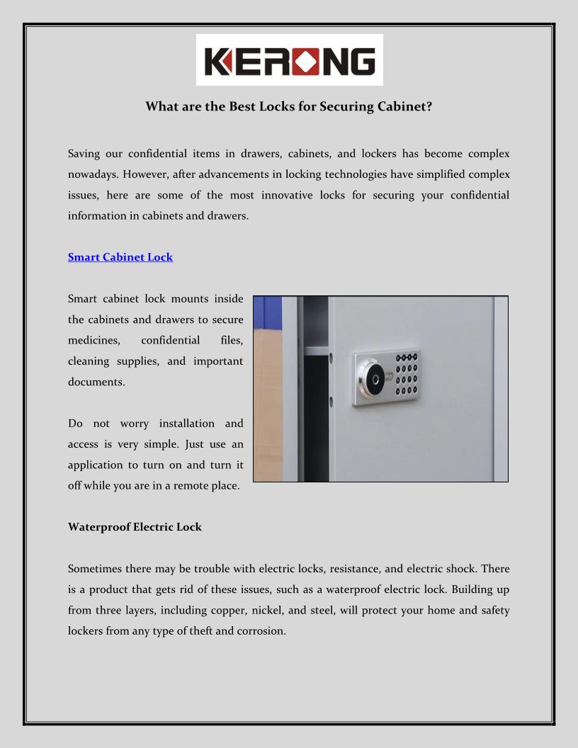 Kerong sells services of Smart Cabinet Lock, Digital Cabinet Lock, RFID Card Cabinet Lock, Keypad Cabinet Lock, Digital Drawer Lock, Hidden Magnetic Lock.