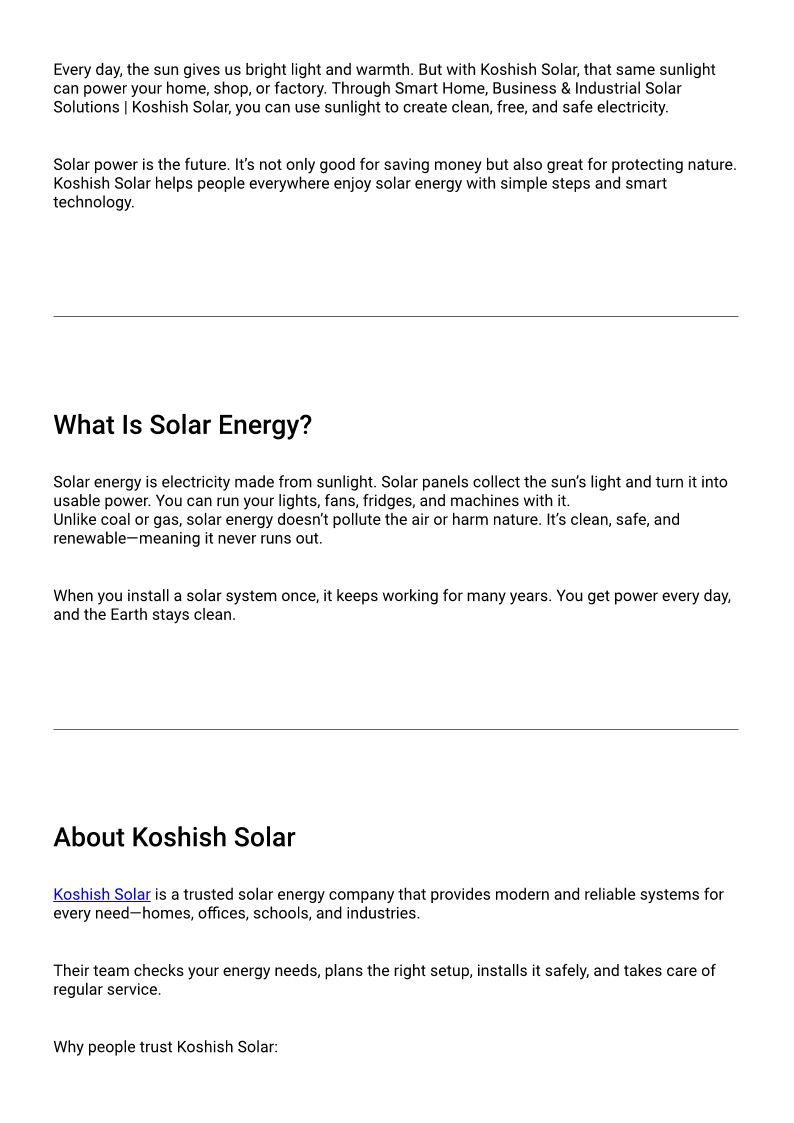 At Koshish Solar, we believe in powering a brighter and greener future. We are a dedicated solar energy solutions company, providing high-quality solar panels,