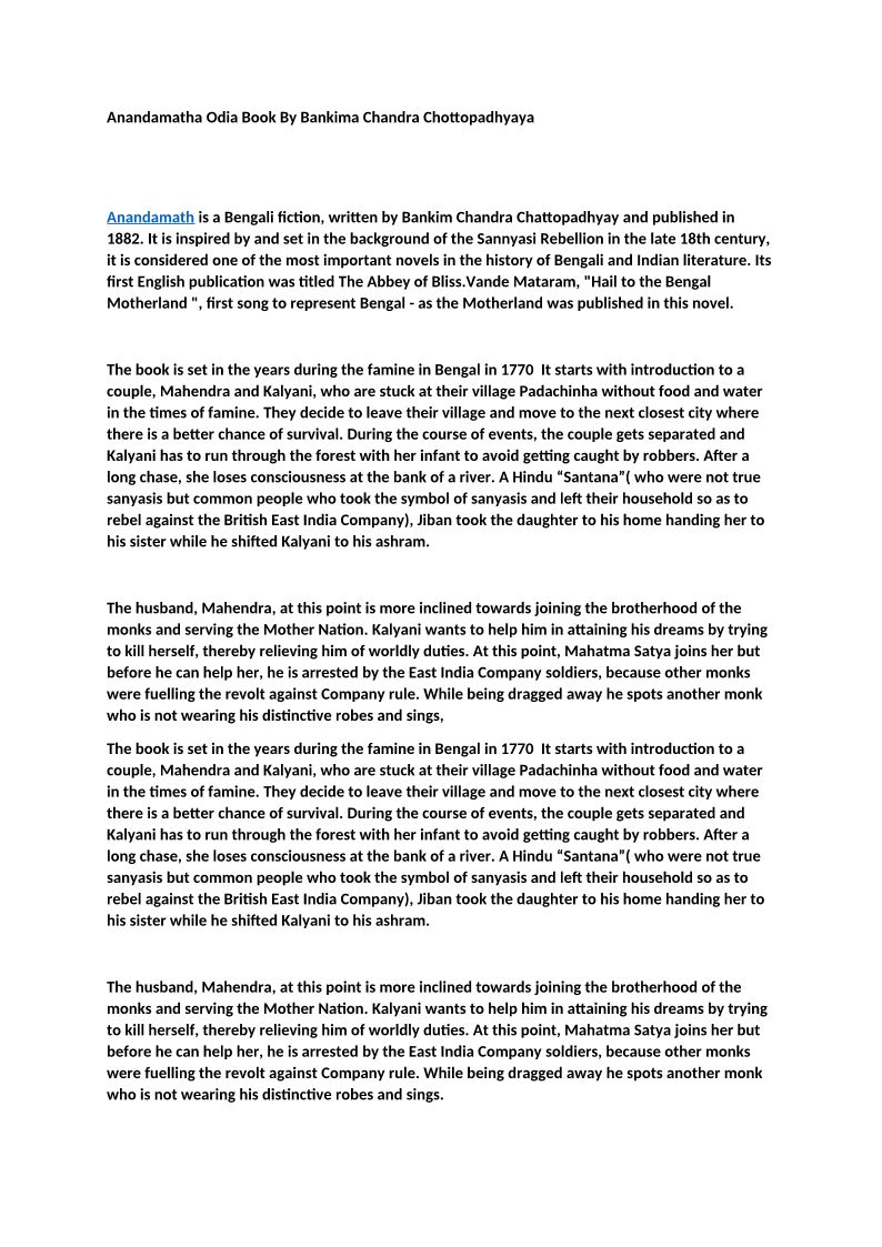 Anandamatha Odia Book By Ban...