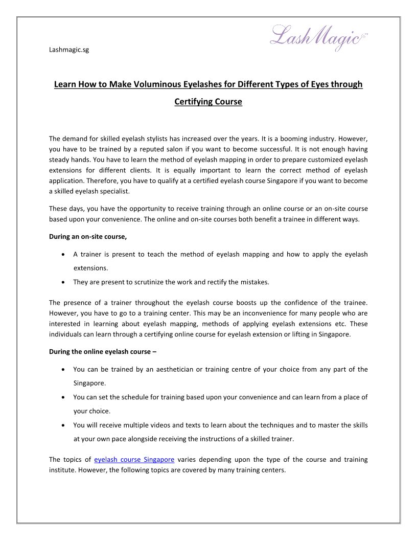 You can learn advanced techniques for treating eyebrows and eyelashes at LashMagic academy in Singapore.