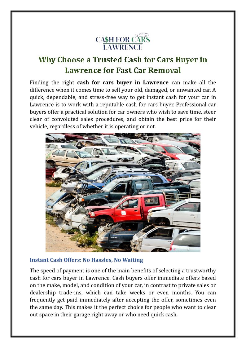 At Cash for Cars Lawrence, we specialize in providing hassle-free solutions for selling your junk cars in Lawrence, Kansas, and neighboring areas.