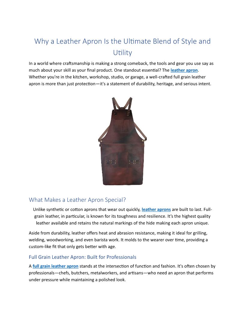 Leather Shire offers handcrafted leather aprons, bags, belts, and knife rolls designed for durability and style.