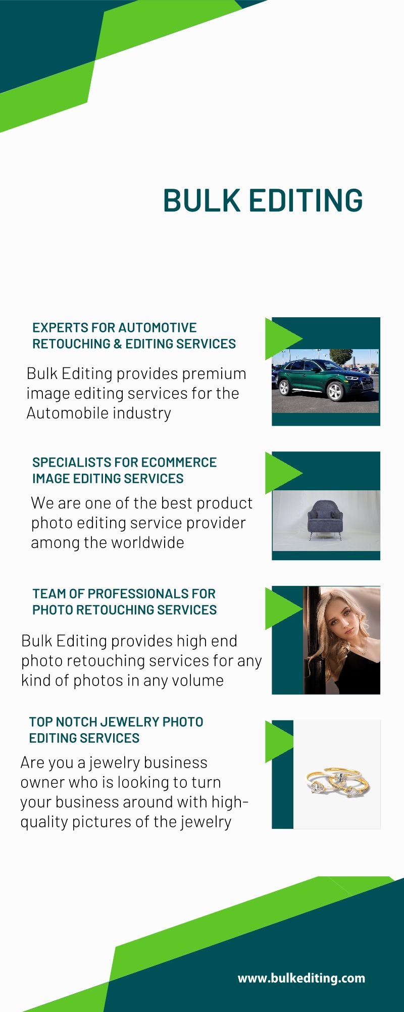 For years, Bulk Editing has been in the photo editing industry and completed many projects for various companies that outsource their image editing work.