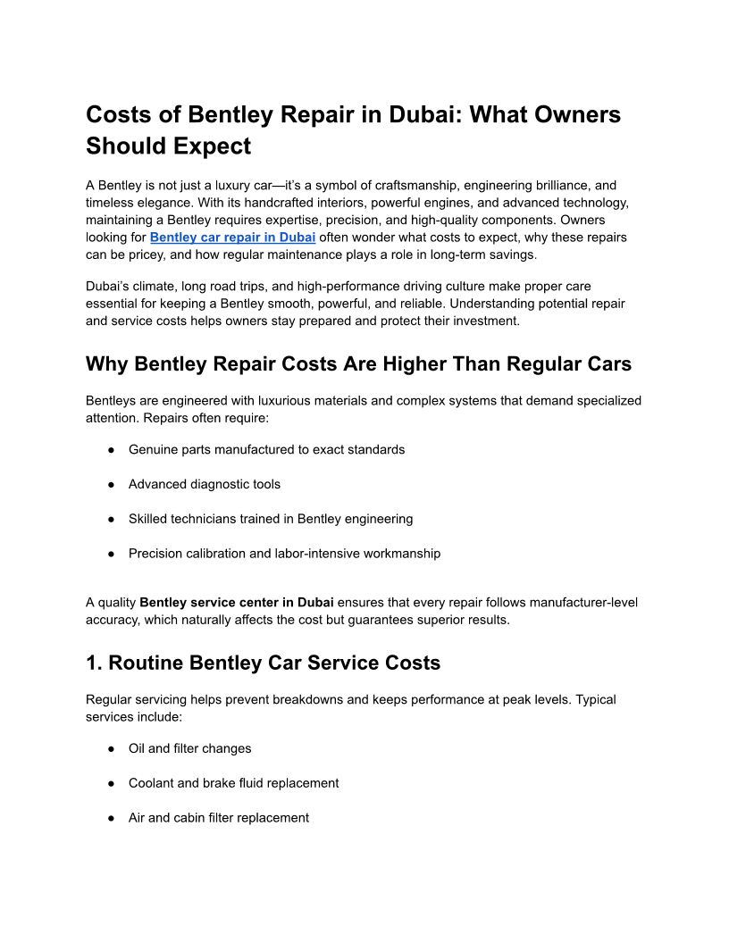 Costs of Bentley Repair in D...