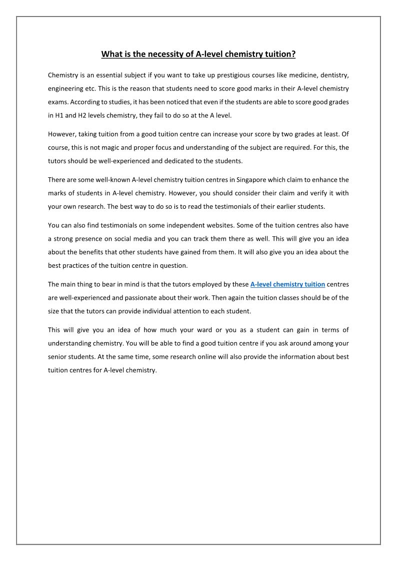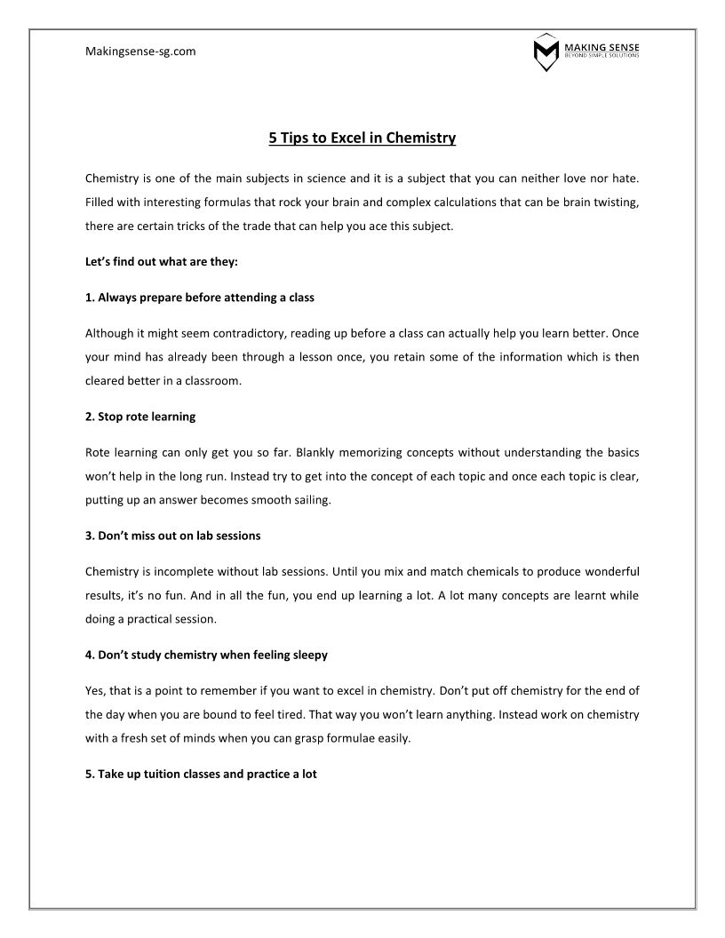 Making Sense is an award winning chemistry tuition centre in Singapore.