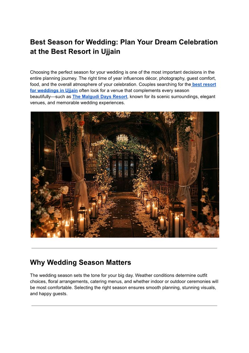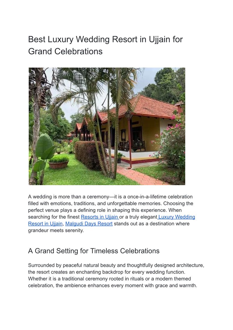 Luxury resort weddings in Ujjain come alive at Malgudi Days, a premium destination wedding resort offering lush green lawns, elegant indoor and outdoor venues,