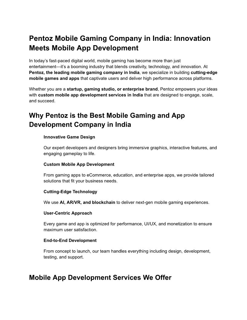Pentoz Mobile Gaming Company...