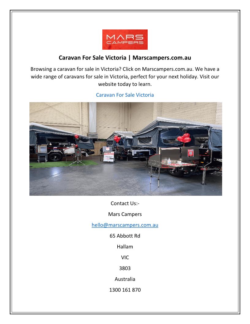Caravan For Sale Victoria M...