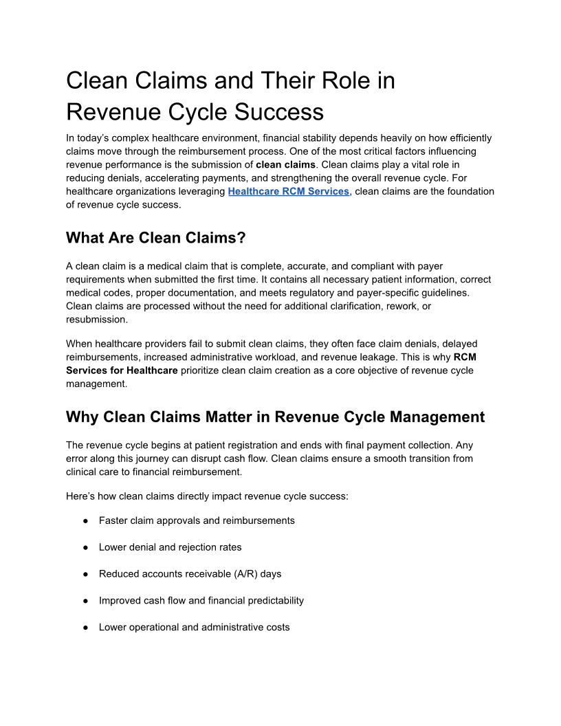 Clean Claims and Their Role ...