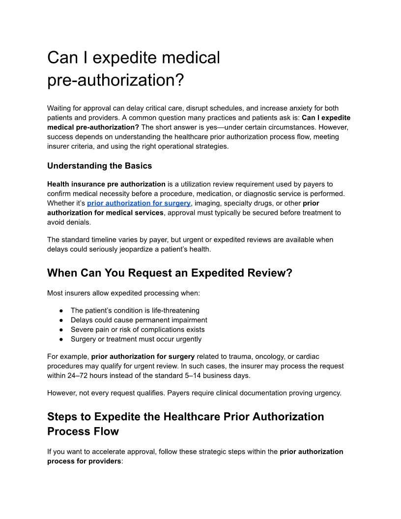 Can I expedite medical pre-a...