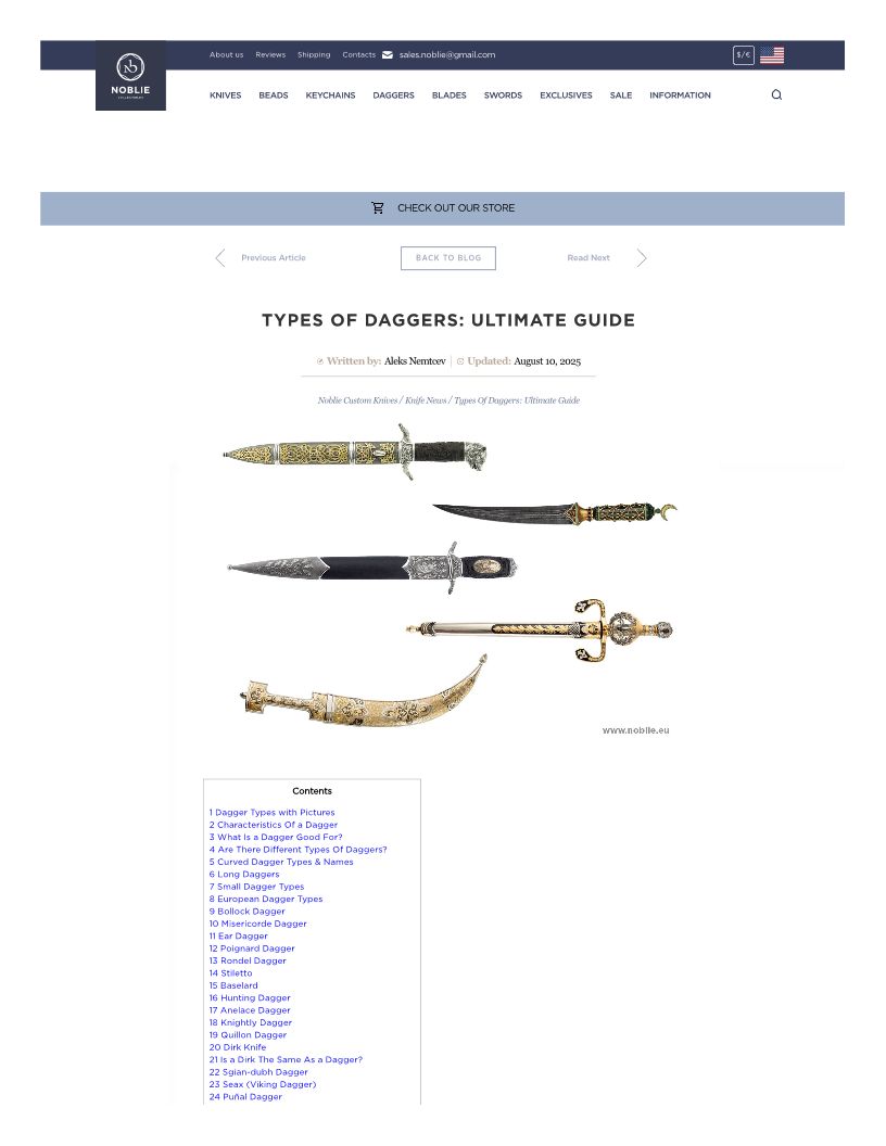 Different Types Of Daggers
